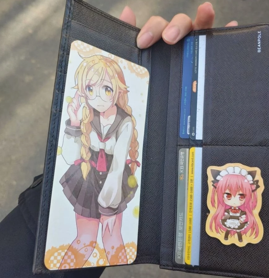 しかし、財布を開けた瞬間、パンドラの箱が開かれたのです。まさに財布の一面を占めるほどの大きさのアニメーションキャラクターカードが入っていたのでした。このようなカードの大きさは普段財布の持ち主が当該キャラクターを想う気持ちがどれぐらいなのか見当がつくでしょう。