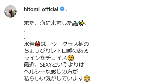 46歳で堂々の水着姿披露はなかなかの自信ですね!