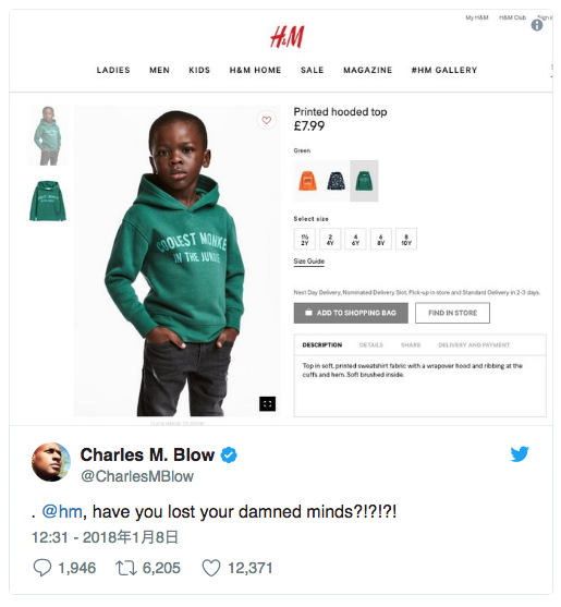 「ジャングルで最もクールな猿」とプリントされたパーカーの広告に黒人少年を起用したアパレルメーカーのH&Mが、「人種差別的」との批判の声を受け、謝罪した。1月8日、ハフポストUK版などが報じた。
