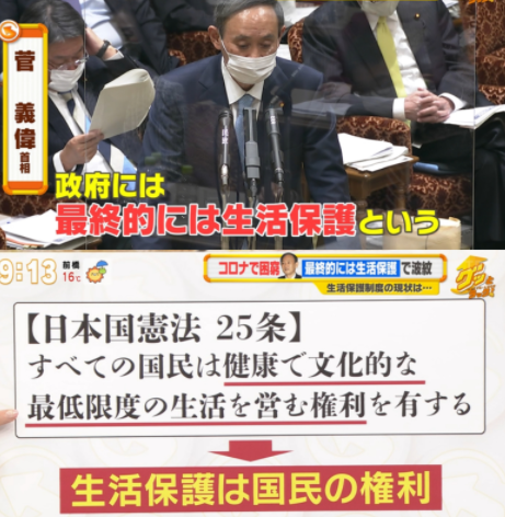 この日、先週の国会で菅首相が、コロナで生活が苦しい人の支援について「最終的には生活保護という仕組みがある」と発言したことを取り上げていた同番組。