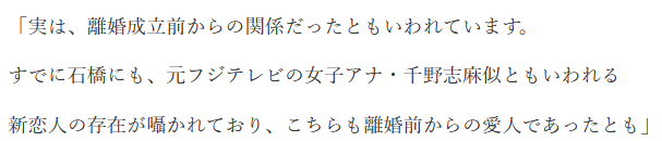 石橋さんと離婚してから早1年が経ちました。早くも保奈美さんに男性の影が見え隠れしているんだそうです。カフェなどで仲睦まじく過ごす男性の存在が目撃されており、新恋人とウワサされているそうですよ!
