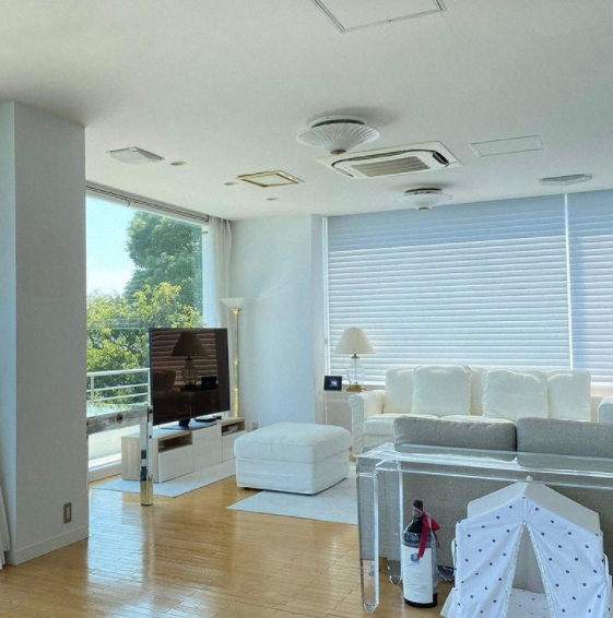 「@ikeajapan にて、白のソファを買って、配送、組み立てサービスをお願いして、昨日完了でした ついでに、片付けもして ちなみに、白のブラインドは@hunterdouglasjapan のモノです」と、家具のこだわりも明かしています。まるでリゾートホテルの一室のようです。
