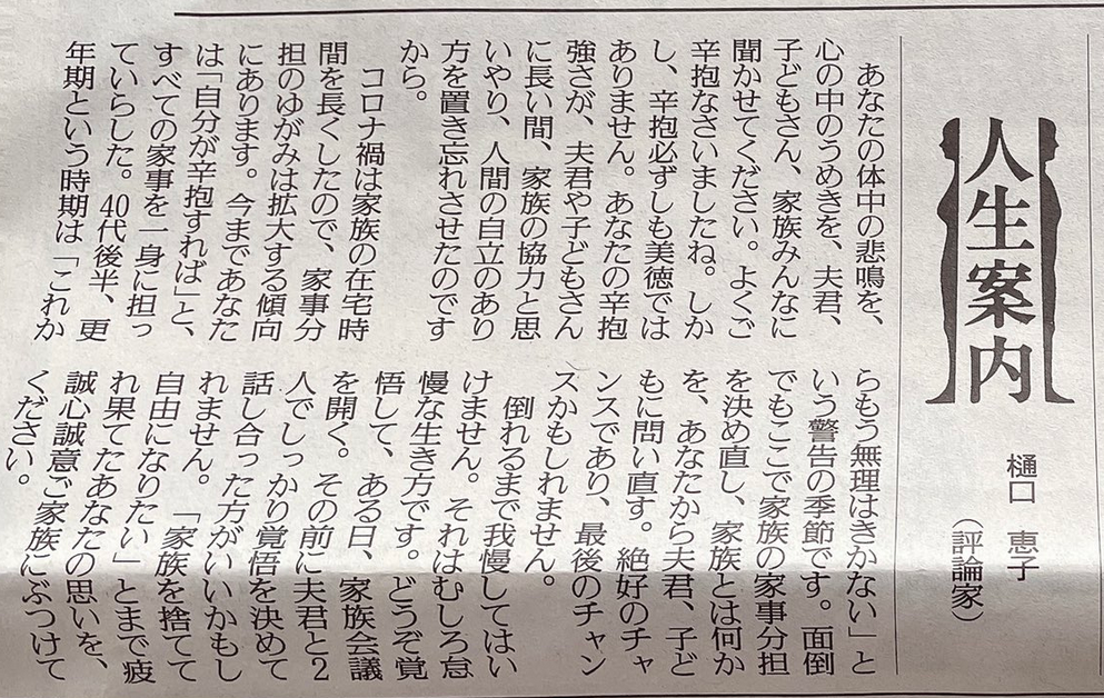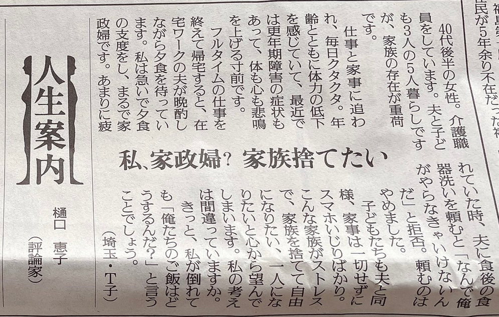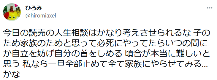 人生案内コーナーに吐き出したことで少しでも気が楽になっていたらよいのですが…