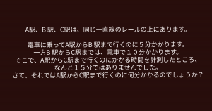よって、B駅からC駅までの時間10分から、A駅からB駅までの時間5分を引いた「5分」が、A駅からC駅まで時間となります。