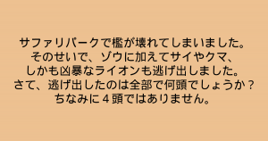 さて、逃げ出したのは全部で何頭でしょうか?ちなみに4頭ではありません。