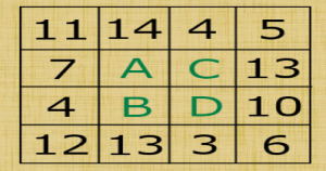 問題 : 次の図は、ある規則によって作成されています。ABCDに当てはまる数字はいくらでしょうか?