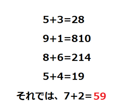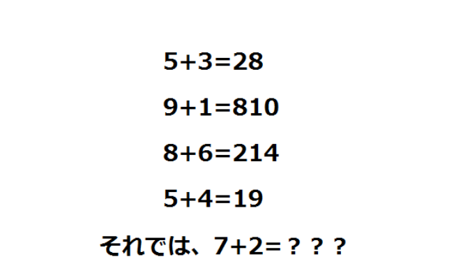 問題 : この式は、ある法則に従って答えが導き出されています。さて、(?)に入る数字はいくらでしょうか?