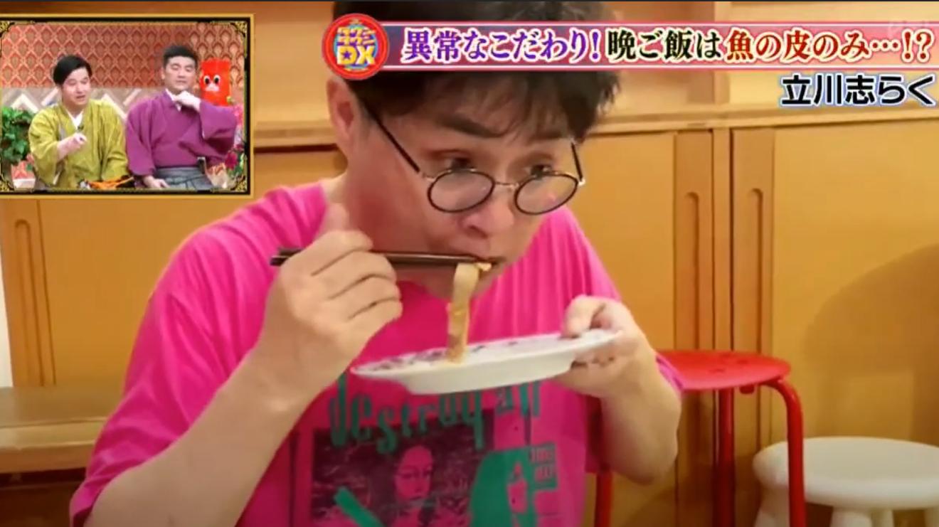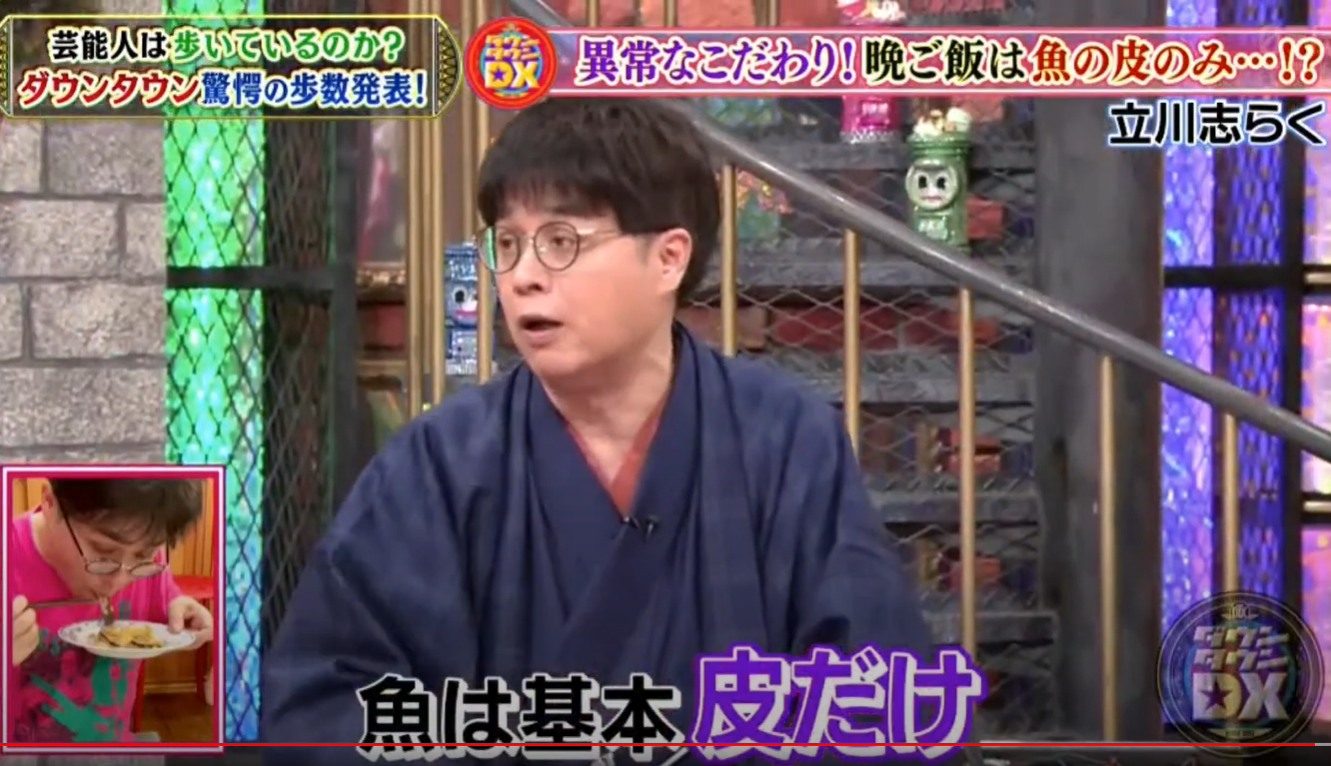 志らくさんの自宅での食事の様子が放送された「ダウンタウンDX」。サケを食べる際は「基本は皮」しか食べないなどとして、皮を食べる姿が流されたのでした。
