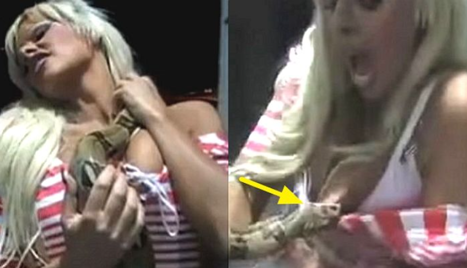そんな中、彼女は番組でニシキヘビと一緒に撮影することになったのですが、突然ヘビが彼女に飛びかかり胸に噛みついたのです。