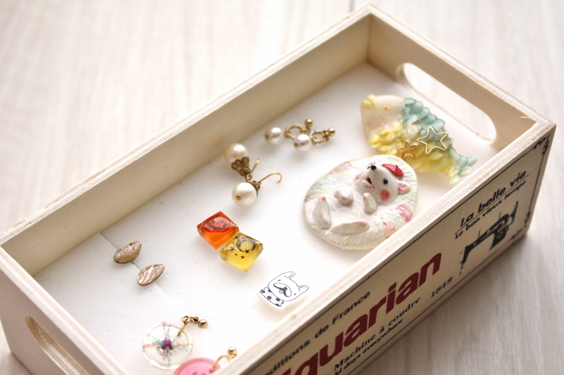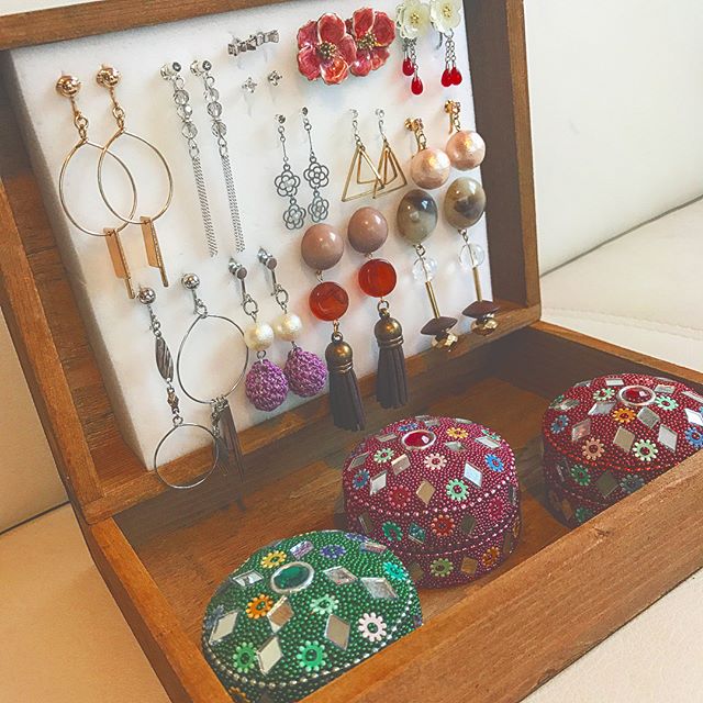 イヤリングを収納するときには、細かい仕切りがついた箱を用意しておくと便利です。手持ちのイヤリングの大きさに合わせて、仕切りの大きさを考えるのがポイント。100円ショップで販売されているような箱の中にも、小さな仕切りがついたものは見つかりますよ。木製やプラスチックの箱の場合は、底に好みの柄の布やシートを敷くと一気に楽しい雰囲気に。光沢のあるベロアやサテンなら、高級感のある雰囲気がでます。蓋の部分がガラスになっていれば、ディスプレイとしても一役買ってくれるでしょう。綺麗なパッケージの高級チョコレートの箱も、意外に役立ちます。