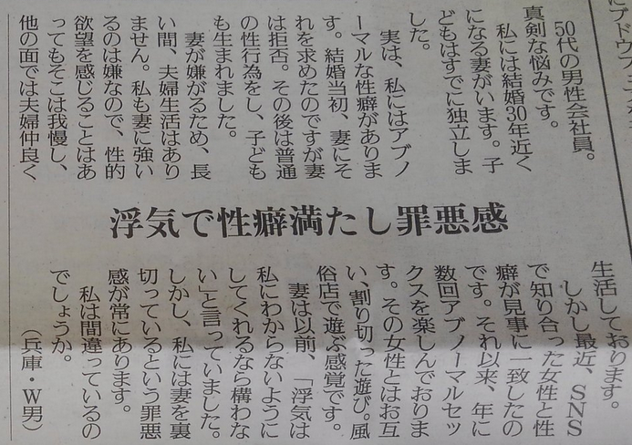 この男性は妻には受け入れてもらえない夜の嗜好があるようですね。
