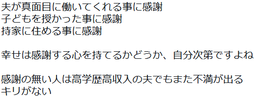 あーでもないこーでもないと夫の不満を連ねています。妥協して結婚したような口ぶりも酷いものです。