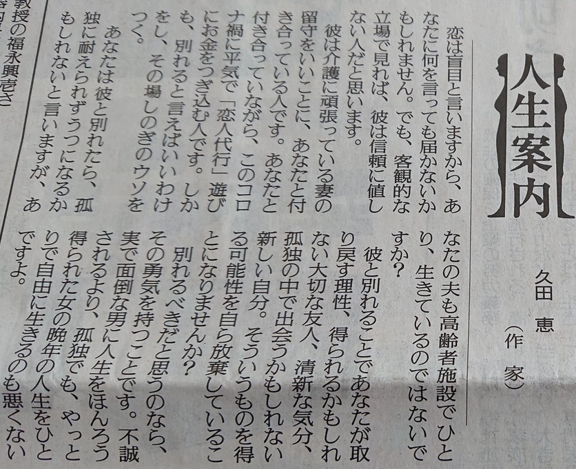 このお悩みにアドバイザーとして回答するのは作家の久田氏です。