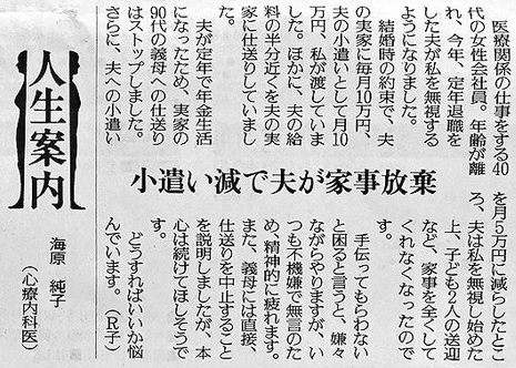 夫のお小遣いを半額にしたところ家事はおろか無視するようになったというのです。