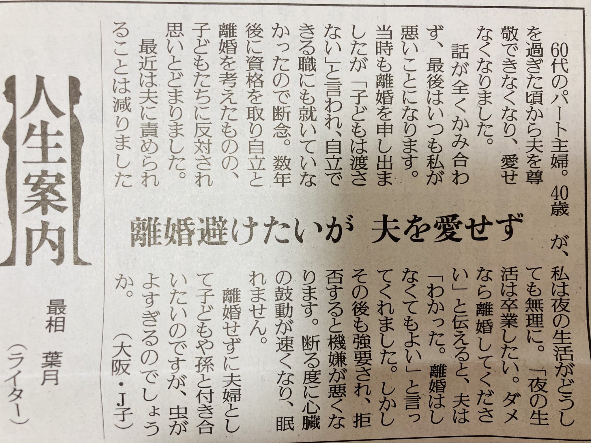 この相談文にアドバイザーとして回答するのはライターの最相氏です。