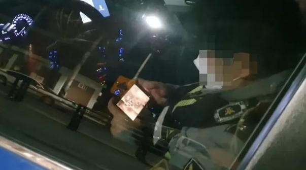 こちらが実際の写真です。パトロール中なら早くパトカーを走らせろよ…と言いたいところですが、通行人は警察官に声をかけ注意をしたとのこと。しかし、警察官は「動画など見ていない」と見え透いた嘘をついたとのことですが…