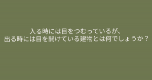 入る時には目をつむっているが、出る時には目を開けている建物とは何でしょうか?