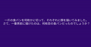 男前というのは別の言い方をすると「2枚目」ということです。2枚目だけに「2枚目」の食パンを1番男前に描くことができました。