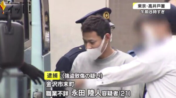 捜査のキーマンになりそうなのが、昨年12月5日に東京都中野区内の住宅に押し入り40代の男性を殴って現金約3000万円を奪って逃走した人間で、強盗致傷の疑いで逮捕され「ボコボコにしてやった」と供述した、石川県金沢市に住む職業不詳・永田陸人容疑者(21歳)です。