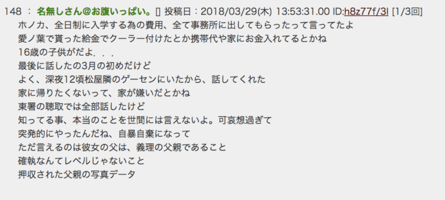 もしも上記の情報が正しければ、全日制の高校に行くための費用を事務所に全額工面してもらったことになります。さらに、家のことが嫌いだったという事実も明らかとなります。