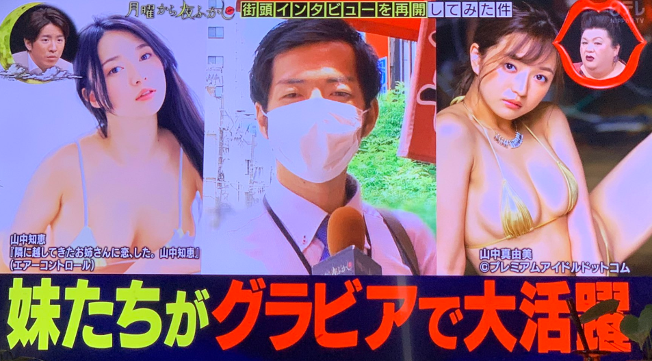 妹たちのPRをするためにインタビューを受けたという兄。番組では山中真由美さんと山中知恵さんの写真を掲載し「妹たちがグラビアで大活躍」と紹介しました。