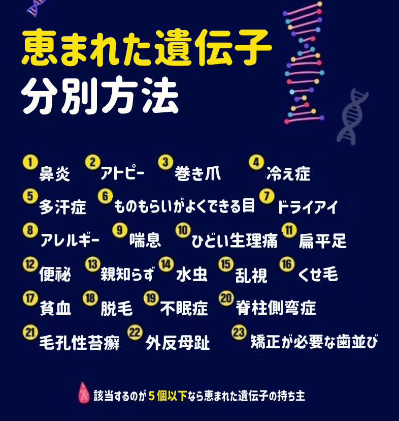 色んな遺伝子が存在する中、”恵まれた遺伝子”についてネット上が盛り上がっています。