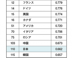 残念ながら日本も151カ国中110位と、非常に低い順位にあります。