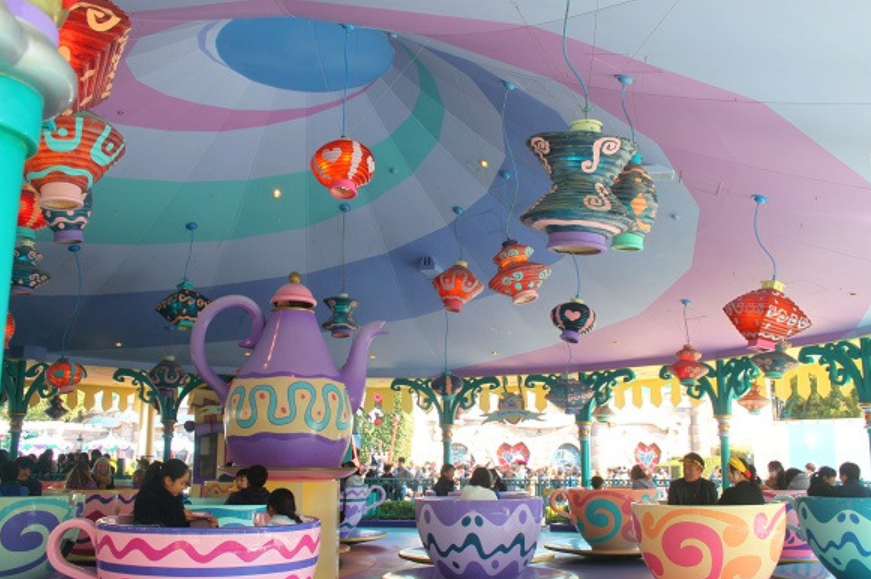 まず1つ目が「アリスのティーパーティー」。コーヒーカップが回るアトラクションなのですが、誕生日であることを伝えると、アトラクション開始前のアナウンスで名前を呼んでおめでとうございますと祝ってくれます。