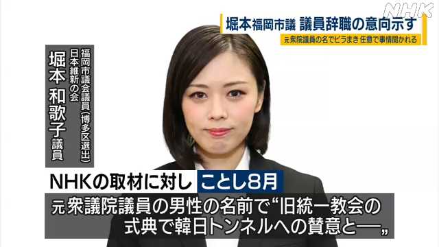堀本氏は日本維新の会所属で、次回市議選でのライバル候補と目された参政党所属の元衆議院議員・新開裕司氏になりすまし、新開氏と旧統一教会との関係を示すチラシを今年8月に配布し、防犯カメラに映った姿や車両のナンバーなどから特定され、議員辞職を表明しました。