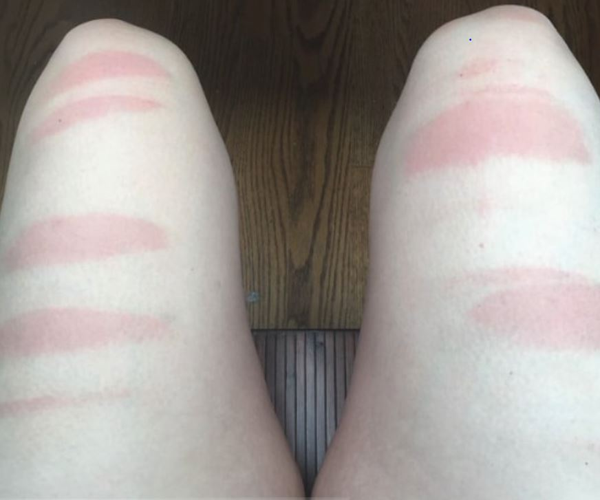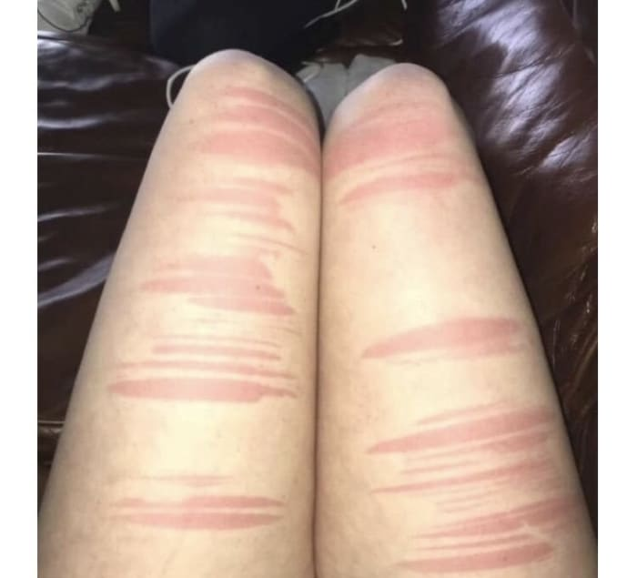 まるで鞭に打たれたかのような模様が刻まれた人や、膝の部分だけ丸く焼けた人など、さまざまな被害者が続出しています。