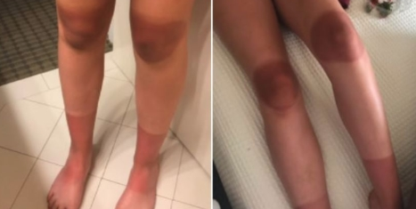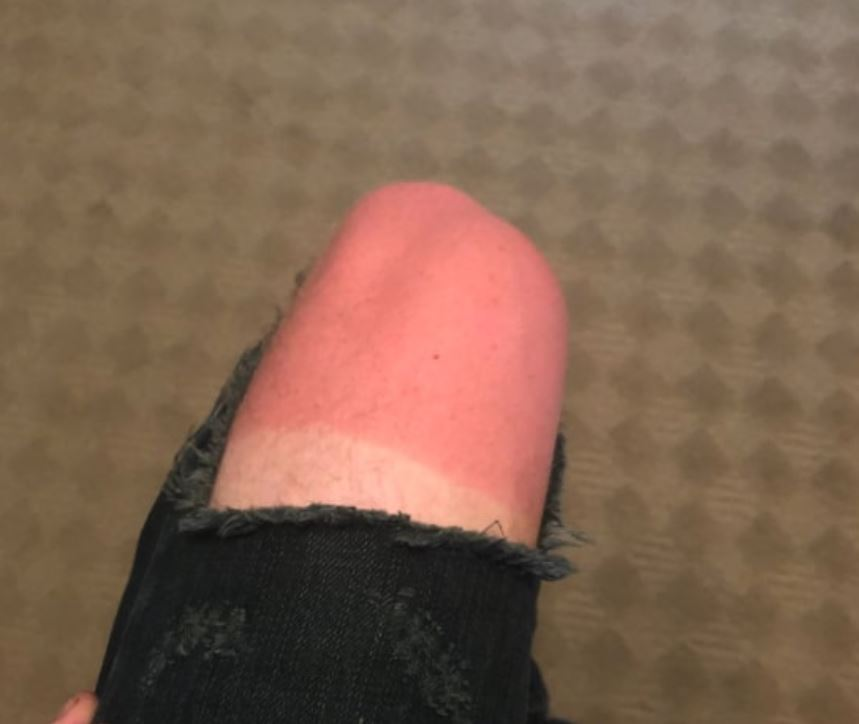 写真に写る太ももを見ると、ズボンの形を見なくてもどんなズボンを穿いていたのか推測できるほどの焼け具合が確認できます。