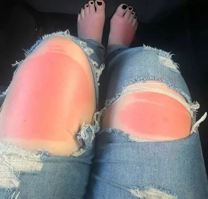 すべての人が同様にジーンズのダメージ部分だけが赤く焼けているのです。