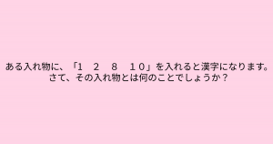ある入れ物に、「1 2 8 10」を入れると漢字になります。