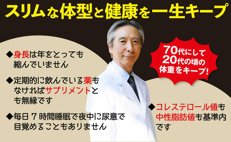 現在70代にして20代の頃の体重をキープしているそうです。