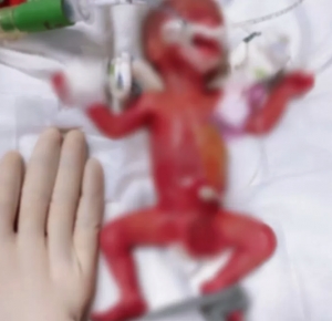 あまりにも早く生まれたため、赤ちゃんはとても小さな体で、苦しい死闘を続けていきました。