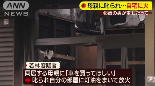 48歳の男が母親に車おねだりして断られたから自宅に放火て…。