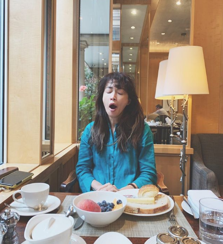 長谷川京子が9月6日にアップした写真は、8月20日ごろからフランスとイギリスを旅しており、その際に友人のフォトグラファーが撮ったものだそうです。フルーツやパンの皿を前に、素顔の長谷川京子が大きく口を開けてあくびをしています。