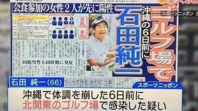 後に食事会の参加者から複数の感染者が出たことが判明。女性2人が先に感染が分かったことから、時期的に感染経路になった可能性があるとみられているようです。石田さんが 食事会の後、女性とどのような行動を取ったかは分かっていません。石田さんと一緒にプレーした男性1人が 石田と同時期に発症し、同じ病院に入院しているそうです。
