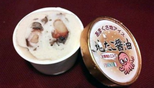 宮城県石巻市にある有名な老舗和菓子屋「風月堂」で販売されているタコ入りのアイスクリームです。 お成分はお米、タコ、醤油でアイスクリームとは全く関係ないもので構成されています。 材料も味もアイスクリームとマッチが不釣り合いなので、どんな味か本当に気になります。