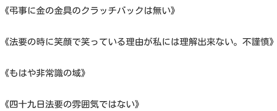 故人を偲ぶ集まりにも関わらず笑顔を見せることに批判するコメントも見受けられました。