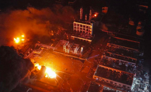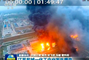 中国東部江蘇(Jiangsu)省の塩城(Yancheng)市にある化学工場で起きた大規模な爆発の犠牲者は22日、47人にもなりました。工場からは黒い煙が上がって火災となり、近隣の住宅も爆風で窓が吹き飛ぶなど、広い範囲で被害が出ました。李強市長は、事件の犠牲者は44人、16つの病院に負傷者90人が入院していると発表しました。32人が重体となっているようです。