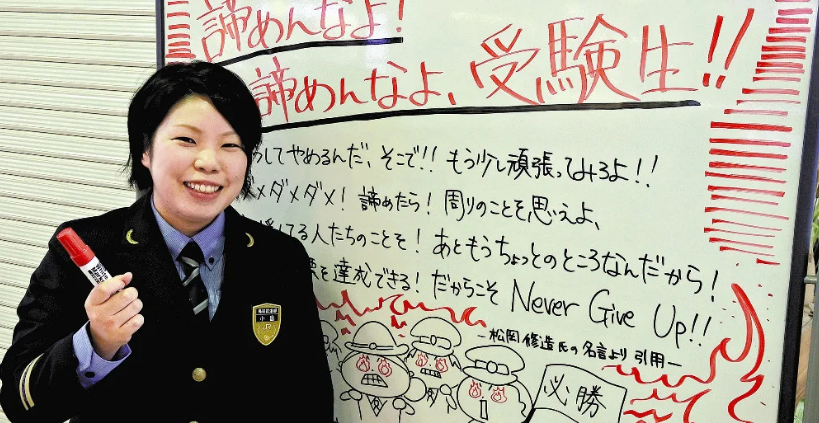 ホワイトボードのメッセージを掲示したのはこちらの小畠美由紀さん。彼女はJR鳥取駅のみどりの窓口で働く駅員さんなのですが、卒業生に向けたメッセージが非常に感動的です。小畠さんとされるTwitterアカウントでも、あまりの反響のあまり喜んでいますね。
