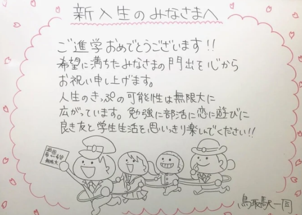 実はこの施策は「あたたかみのある駅づくり」を目標に掲げているJR鳥取駅が2年前から始めたものです。メッセージをきっかけに「鳥取駅ってあたたかいな」「鳥取に行ってみたい」といった反応があったようで、とても光栄で喜ばしいことだと感じていますとしています。もちろんこのようなメッセージは、卒業シーズンだけではなく、鳥取マラソンやこれからの入学式、入社式などのタイミングでもイラストを描く予定だそうです。