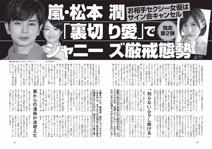 松本は嵐の中でもかなりのヤリ◯ンと言われ、嵐のメンバーはセ◯クス報道がされた過去が多く、 過去にセ◯クスや交際の噂が出たのは「小雪」「北川景子」「仲里依紗」などで、そして最も公認とされているのが、女優の「井上真央」です。