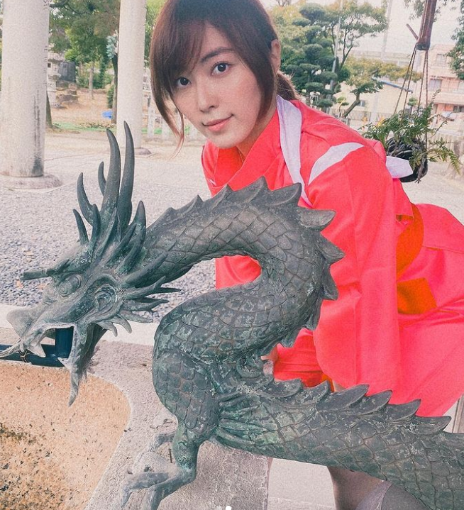 「1000投稿目ということで…千と千尋の千になりました。2枚目は、ハクみたいな龍と」と、スタジオジブリの名作アニメ映画「千と千尋の神隠し」の主人公「千」のコスプレ姿を披露しました。