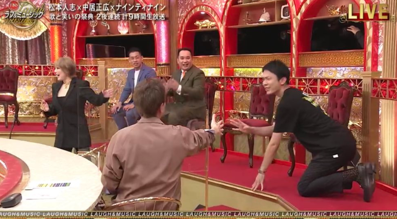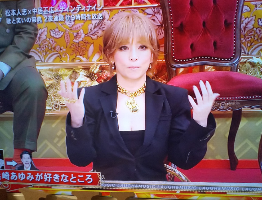 お笑いと音楽を融合させた生放送特番。浜崎さんは歌唱後にスタジオトークにも参加し、松本人志さん、中居正広さん、ナインティナインらと共演しました。