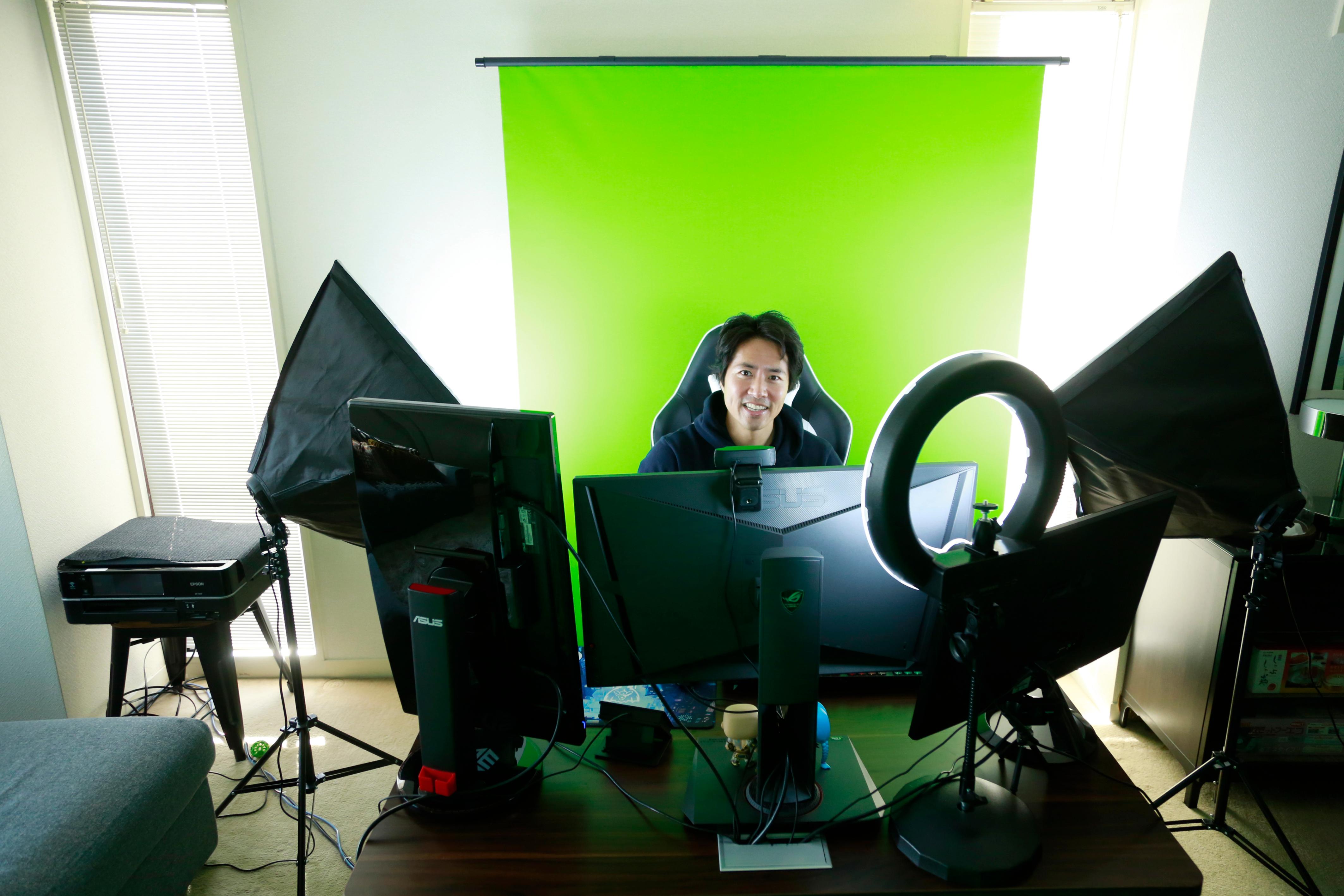 ケインさんは、「ゲームは本当に毎日やらないとすぐ(腕が)落ちますね」と話し、一日に8〜10時間程度はゲームをし、毎日勉強もしないといけないため一日の大半はゲーム関係に費やしているとのことです。そして、ケインさんは実際に配信を行っている「ゲーミングルーム」を紹介していきました。