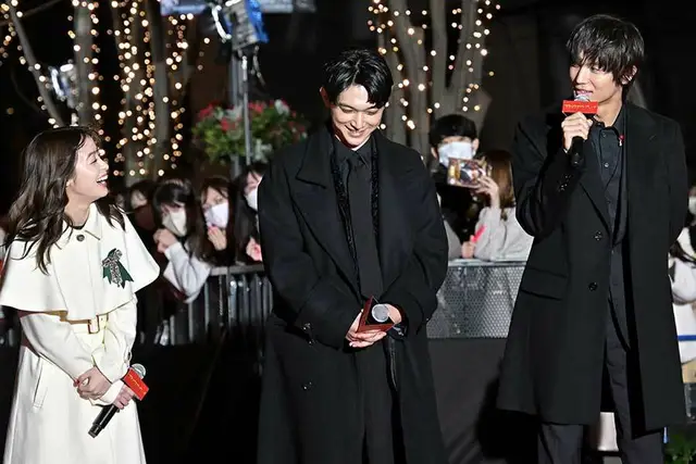 共演の中川大志さんらと登壇し、熱い視線で見つめるなどのラブラブっぷりは明らかでした。