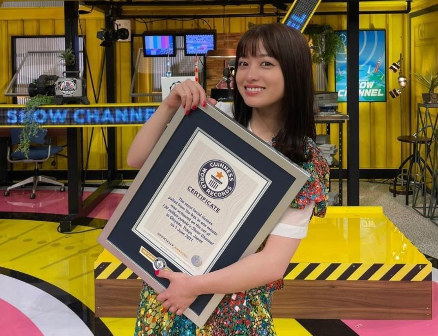 司会の黒柳徹子さんから自己紹介を促された橋本さんは、「私、一応ギネス記録を持っているのでそれをしっかり報告したいなと思ってきました」とコメントしました。その世界記録とは“高速ティッシュ抜き”のことで、1分間でティッシュを何枚引き抜くことができるかというものです。