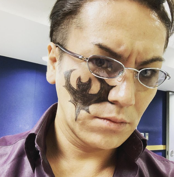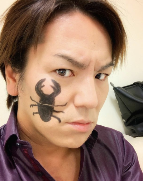 狩野さんは「タトゥー入れちゃった。黒いダイアモンドとは俺の事よ。。」のコメントとともに、大きなクワガタの絵を顔に描いた写真を投稿。